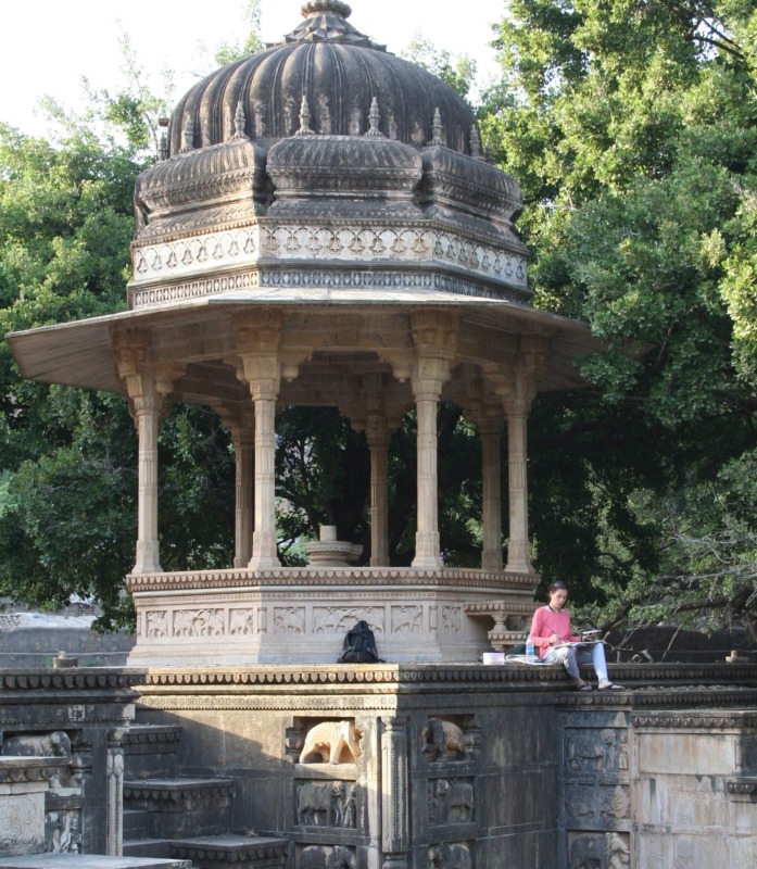 Kumar divides her time between thinking space a rural farmhouse with dedicated painting and printmaking studios, intense studio practice in London and increasingly longer regular working trips to India to gather images and ideas. Of course, it’s always an excuse to catch up with family – I miss those chapatis and the chatter – I just love it all, I absorb it like a sponge. When I get back to the studios I am bursting with new ideas. I love sharing that feeling through my work and when I meet people. A passion and practice firmly established as the words ‘a trip of a lifetime’ was the overwhelming response from the WEXAS travellers she took to the places in India that had most inspired her work