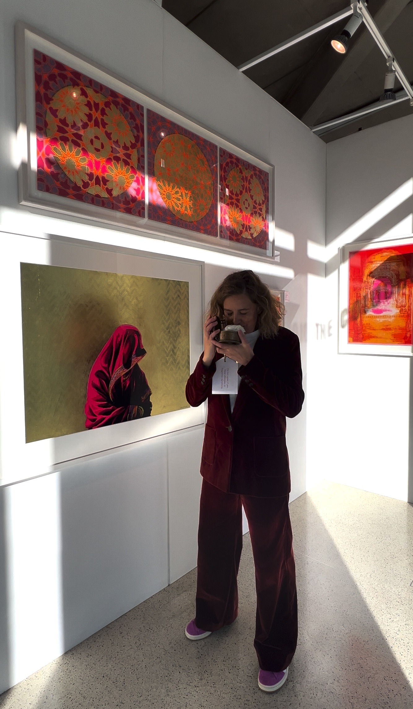 She also pops up in less traditional art venues such as Heathrow VIP Lounge, Science Museum, The Institute of Neurology, The Taj Hotel, and the familiar, Asia House, Southbank and Saatchi.