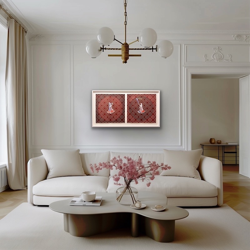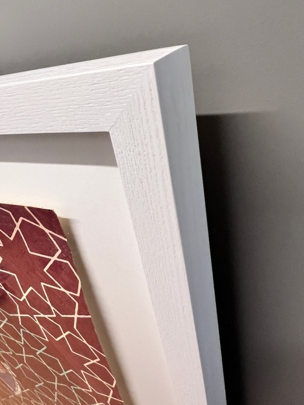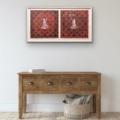 The artworks are available framed or unframed but currently are framed, float mounted together into a soft stained and white hand waxed ash frame and non reflective glass