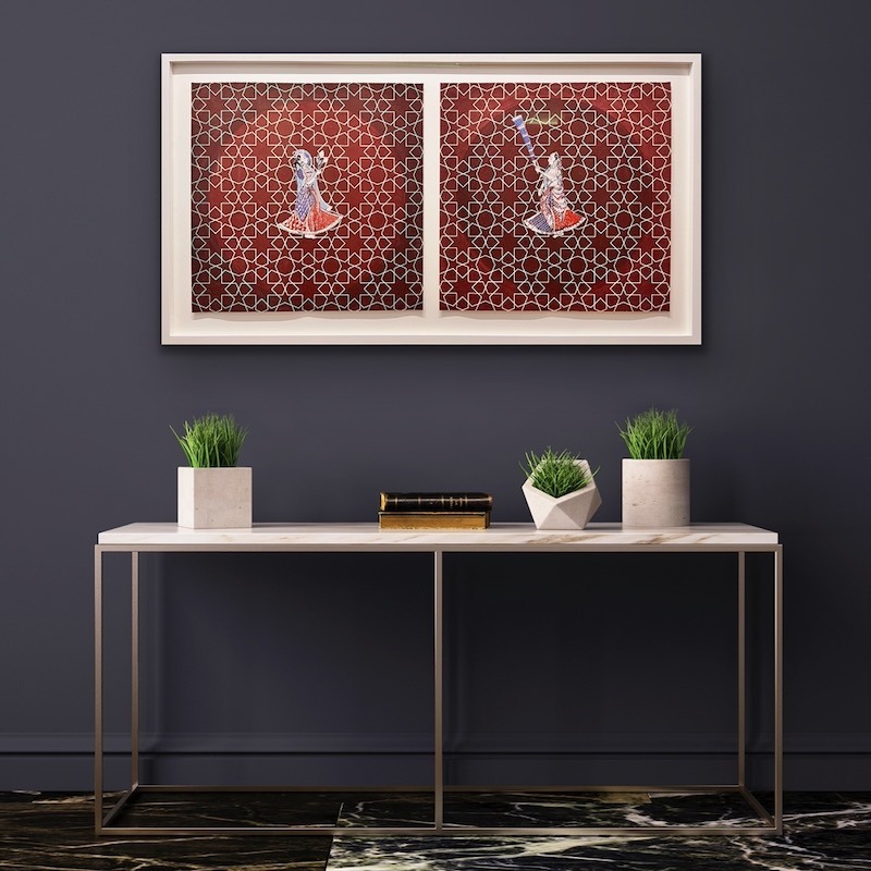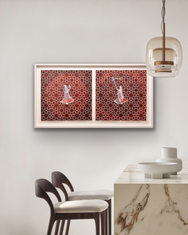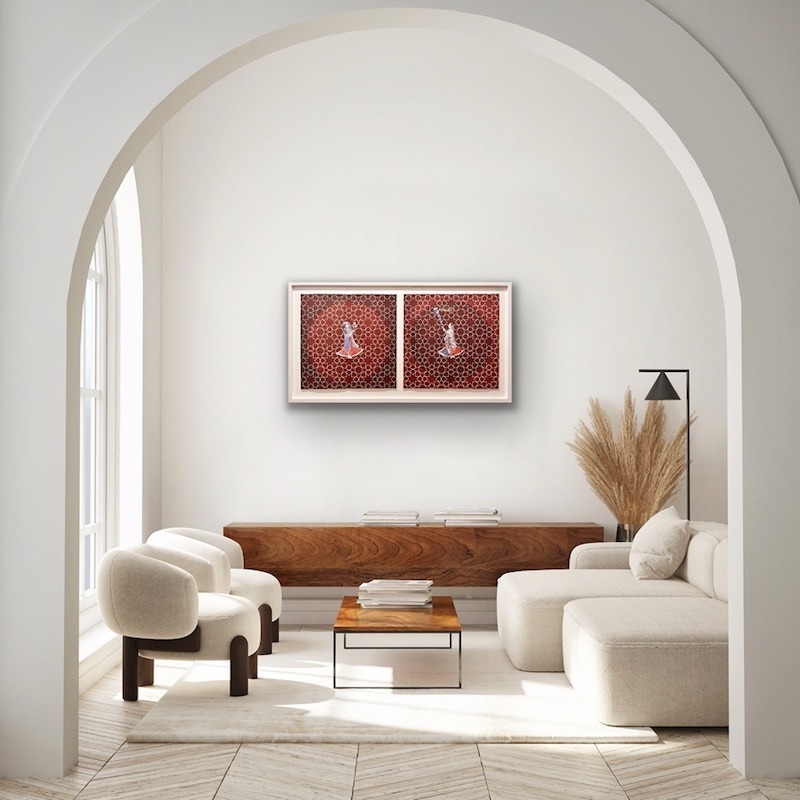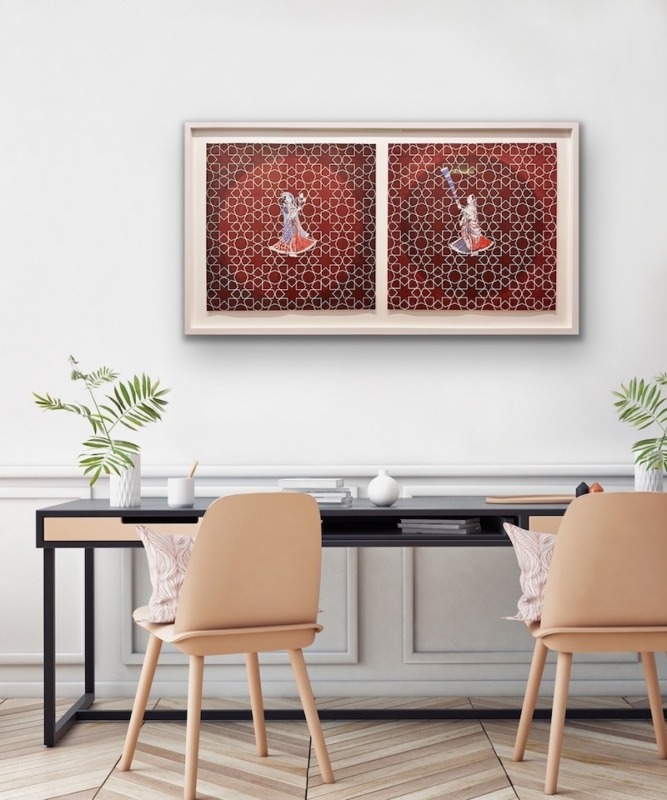 Delicate etchings and screenprints on paper with rich colours and deep textures, Natasha Kumar’s Rasa collection brings together the abstract and the actual in vivid, hypnotising work that references Mughal architecture and her Indian heritage.