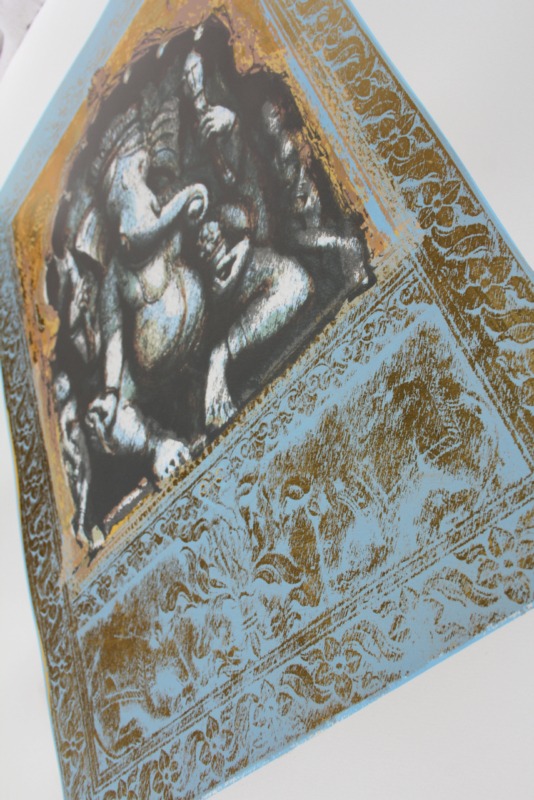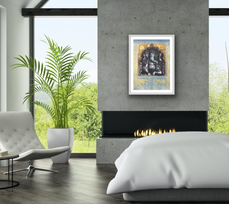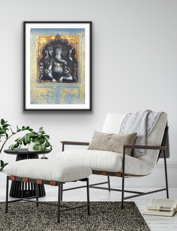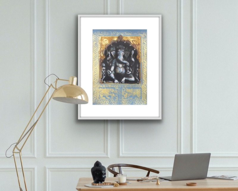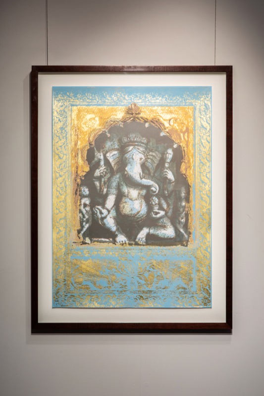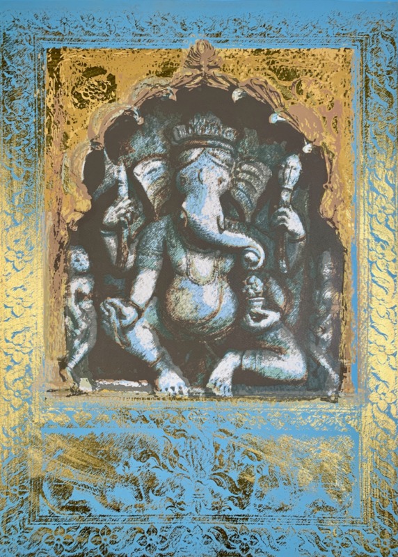 In Series III and IV silver and gold leaf take Ganesha back into the temple and reveal his vehicle the humble mouse, a symbol of our restless minds.