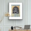 82.5 x 105cm framed size Framed with a generous window mount and white hand stained / waxed frame