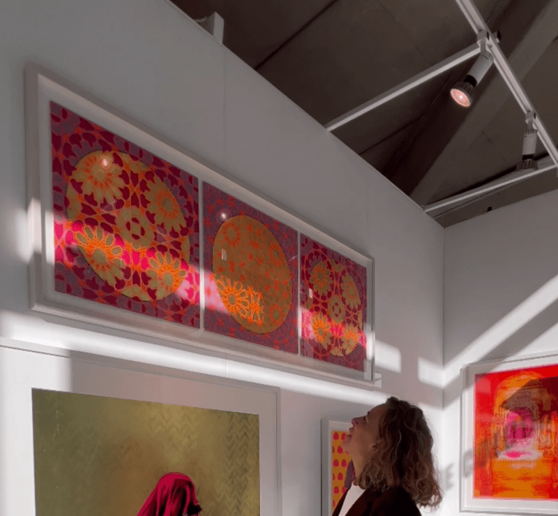 Categories: Diwali Curated Collection, Framed - £5000 - £7500, Glitter, glazes and gold leaf, Islamic art, orange, Pattern, pink, purple, Rasa, Ready to hang, red, Statement artwork for larger spaces, Triptychs and Diptychs, Unframed - £3500 - £5000, Within Reach...