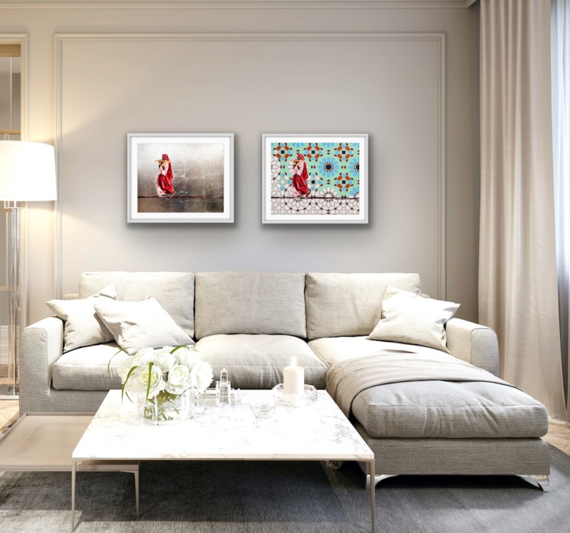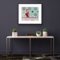 Currently float mounted into a hand-stained soft white frame with non-reflective glass.
