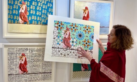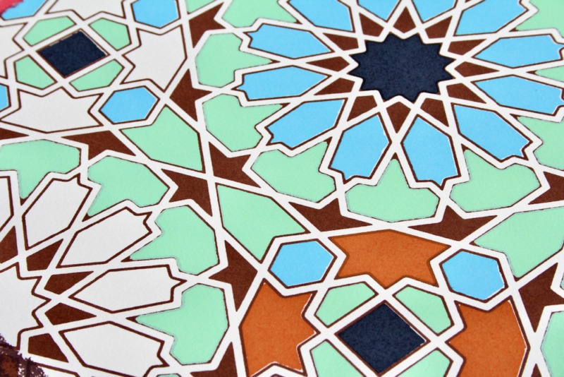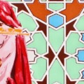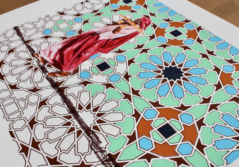 In #Cosmic Change, an Indian Woman is trying to find her place in the modern world set against a background of an Islamic geometric pattern where spiritual tradition and the fast-paced movement forward through the circular cosmic order are in constant flux.