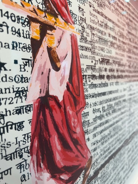 In #suitable match I, Indian Woman strides across pages of matrimonial adverts in search of an astrologically harmonious husband, the prize in a quest for a bride of the right caste and level of education. It’s her dharma, her duty, that she should be married. But as she is educated, she keeps her identity alight among traditional expectations and, empowered by knowledge, retains her voice and independence.