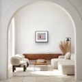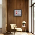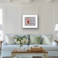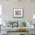 This artwork is currently float mounted into a hand-stained soft white frame with non-reflective glass.