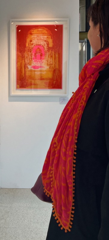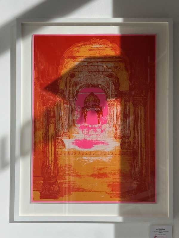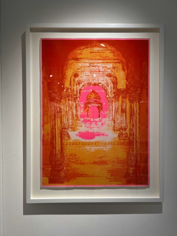 The Maalas are an extension of the Chhatris series and are based on moods or feeling at the different times of day. Maala means garland. In the Maala series, each work of the garland evokes a range of moods through bold pink and orange, russet and turquoise, the colours of everyday life in Rajasthan.