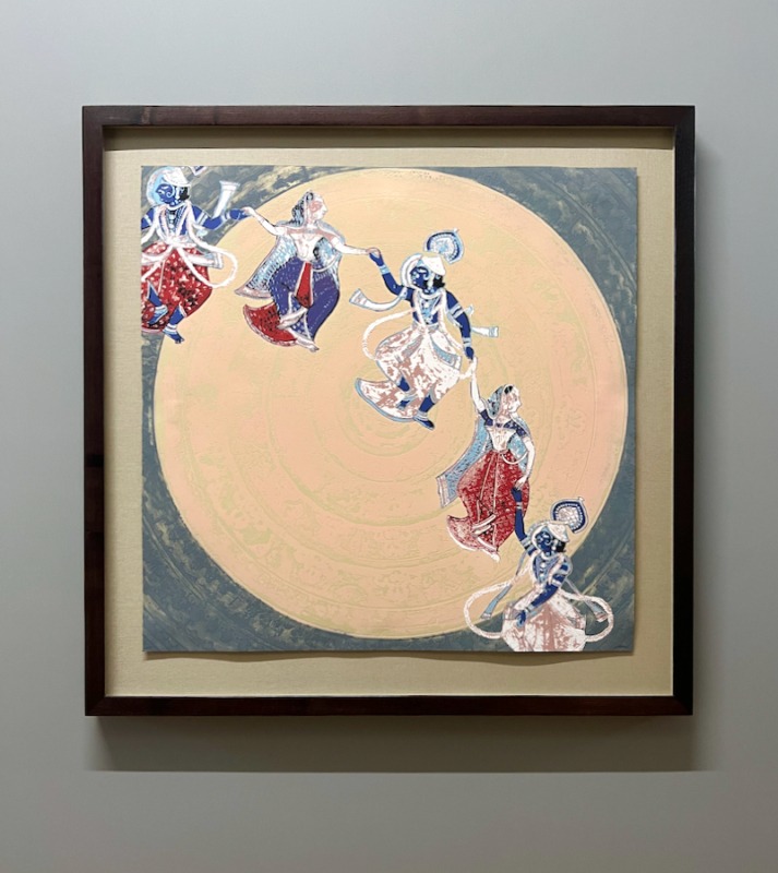 Natasha Kumar’s work evokes a moment of the Rasa Lila, the transcendental dance of divine love when Krishna danced under an autumn full moon with his consort Radha, and his devoted gopis.