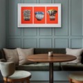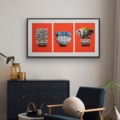 Framing in one frame – H65 x 122 cm Framed size – three works individually trimmed and floated separately in one frame