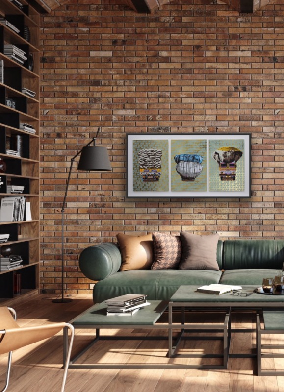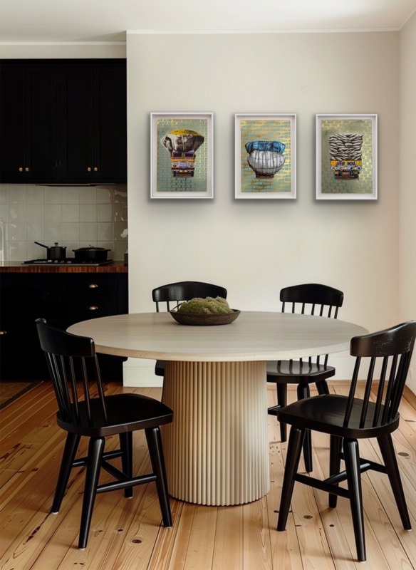 Framing in three individual frames – H63 x 48 cm Framed size – three works individually trimmed and floated separately in three frames