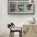 Framing in one frame – H65 x 122 cm Framed size – three works individually trimmed and floated separately in one frame